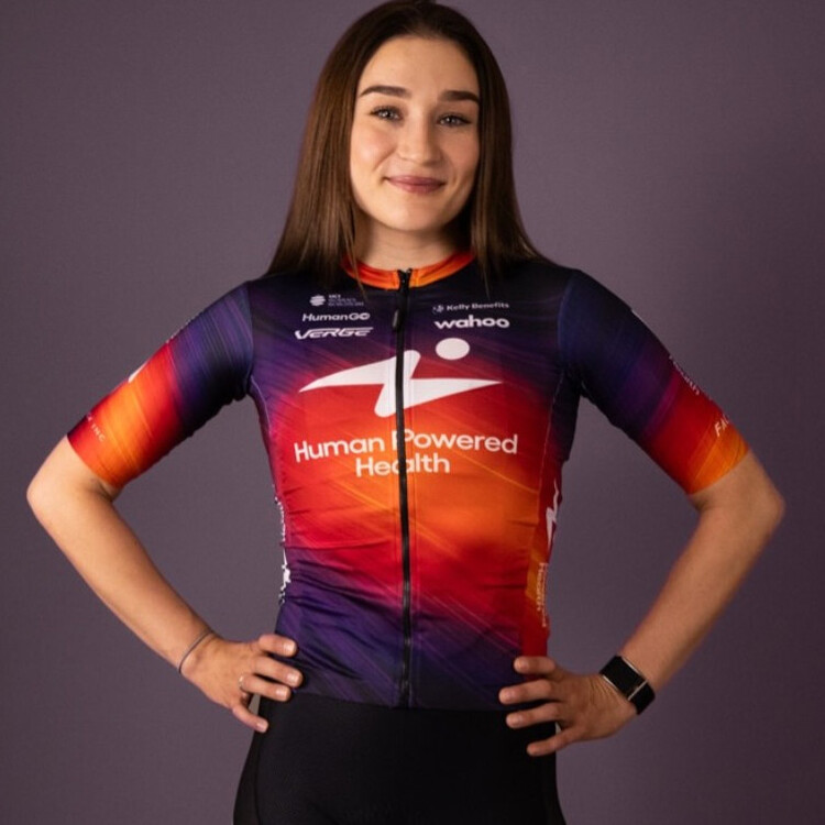 2025 noch eher längs geteilt, so sorgen die gleichen Farben 2026 beim US-Rennstall Human Powered Health durch eine quer angelegte Aufteilung doch für einen neuen Look: Lila und das knallige Orange teilen sich den Oberkörper der HPH-Profis nun nicht mehr in links und rechts auf, sondern in oben und unten.