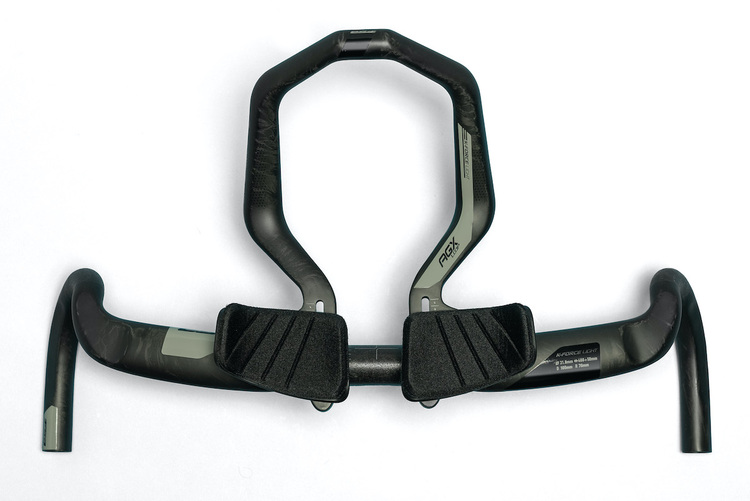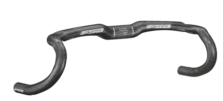 An Langstreckenfahrer wendet sich FSA mit dem K-Force AGX (459 Euro) – ein Carbon-Bauteil, wie der erste Namensanteil andeutet. In seiner Formgebung weicht dieser Bügel deutlich vom Gewohnten ab: Der Oberlenker ist in Relation zur Lenkerklemmung angehoben, dabei leicht nach vorne gebogen und aerodynamisch flach ausgeführt. Im Übergang vom Oberlenker zum Lenkerbogen soll eine nicht zu übersehende Mulde die Handposition am Bremsgriffkörper verbessern. Ein „Flare“ von 25° sorgt dafür, dass der K-Force AGX an den Lenkerenden 50 mm breiter ist als am Oberlenker; auf schwierigem Terrain hat man in Unterlenkerposition damit mehr Kontrolle.
