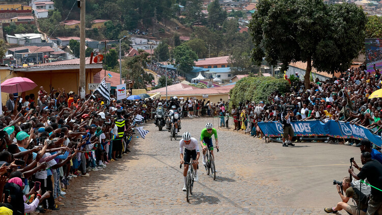 An der Mur de Kigali sorgte Del Toro (vorne) mit seinem Tempo dafür, dass Juan Ayuso (hinten) ihm und Pogacar (zweite Position) nicht mehr folgen konnte. | Foto: Cor Vos