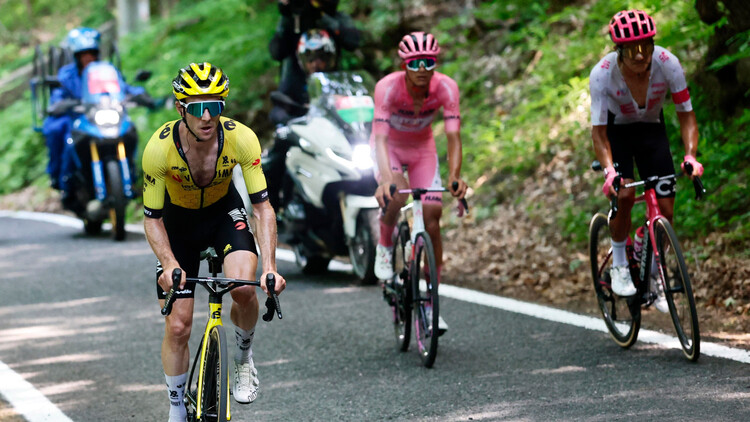 Die Frage danach, wer dafür verantwortlich sei, beantwortete er mit nur einem Wort: "Ich." Und ob er ohne den Fehler, van Aert zu vergessen, den Giro gewonnen hätte? "Ja, ich denke schon." Eine Ein-Wort-Antwort bekamen die Kollegen auch auf eine andere Frage, nämlich ob Del Toro der nächste Superstar im Radsport werden könne: "Nein."