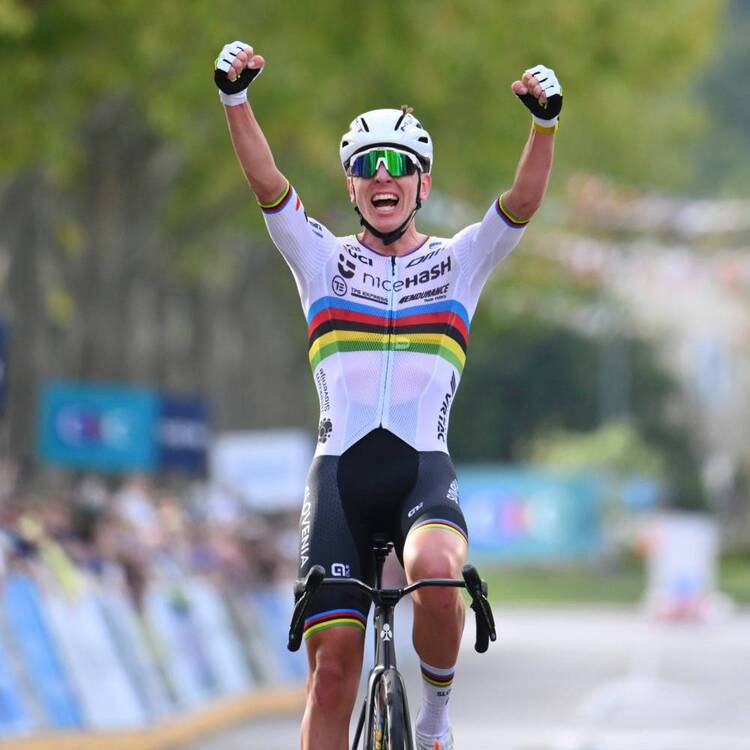 Zwischenzeitlich war Pogacar auf 1:20 Minuten enteilt, gegen Ende des Rennens wurde der Vorsprung aber wieder kleiner. Auf dem Weg zur Ziellinie ballte der Weltmeister seine Faust in Richtung Kamera und konnte sich sein Lächeln nicht verkneifen. Als sein Triumph feststand, holte er sich Glückwünsche von seinem Team und seiner Partnerin Urska Zigart ab. Die Erleichterung stand ihm ins Gesicht geschrieben: "Ich bin glücklich, dass es vorbei ist – ein weiterer Titel für mich!", schwärmte Pogacar.