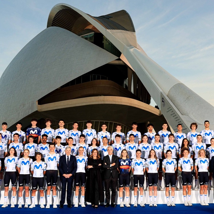 12.12.2025 | (rsn) – Insgesamt 56 Radsportler und Radsportlerinnen, verteilt auf das Männer-, das Frauen und das neu gegründete Nachwuchsteam, präsentierten sich am Donnerstag im Palau de les Arts von Valencia in ihren neuen Movistar-Trikots der Öffentlichkeit.