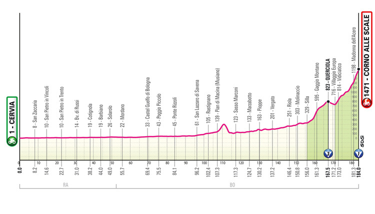 17.05.2026: 9. Etappe, Cervia - Corno alle Scale, 184,0 km