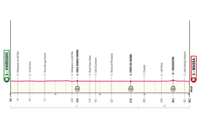 19.05.2026: 10. Etappe, EZF Viareggio - Massa, 40,0 km
