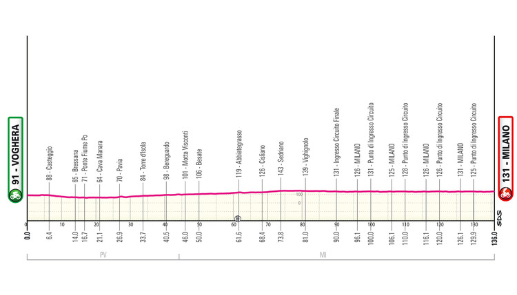24.05.2026: 15. Etappe , Voghera - Mailand, 136,0 km