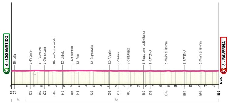 30.05.2026: 1. Etappe, Cesenatico - Ravenna, 139,0 km