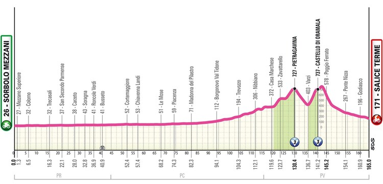 05.06.2026: 7. Etappe, Sorbolo Mezzani - Salice Terme, 165,0 km