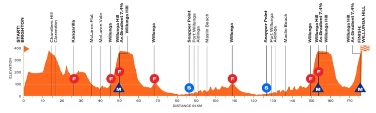 24.01.2026: 4. Etappe, Brighton - Willunga Hill, 176,0 km